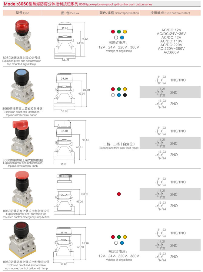8060型防爆防腐分体控制按钮系列二